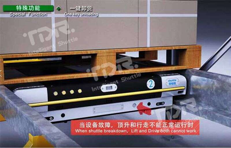 當(dāng)使用救援車救援穿梭板時,如穿梭板出于重載狀態(tài),則很難將穿梭板帶貨物一起拖出,通過此功能,一鍵即可將托盤放置到軌道上,直接將穿梭板拉出即可!